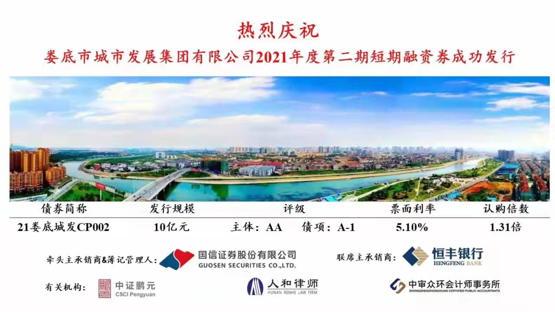 下一階段,市城發(fā)集團將按照市委政府戰(zhàn)略部署,持續(xù)在資本市場探索多元化的直接融資工具,并充分積累和利用此次債券融資的經(jīng)驗,與投資者建立良好互動關(guān)系,多措并舉做好融資工作,為城發(fā)集團轉(zhuǎn)型發(fā)展提供充足的資金保障,為婁底經(jīng)濟社會發(fā)展注入澎湃動力。